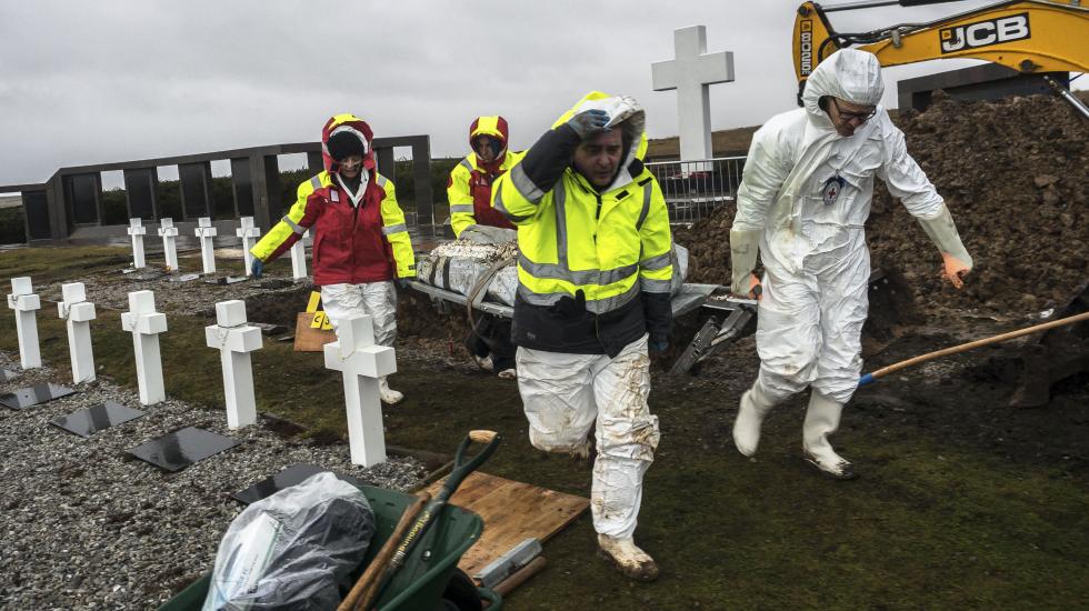 La Cruz Roja formó el equipo multidisciplinario con tres argentinos, dos británicos y especialistas de distintos países para la identificación mediante técnicas forenses de los soldados enterrados en el cementerio de Darwin. Se instaló una morgue temporal en el cementerio y trabajaron de junio a agosto de 2017. En agosto de 2021 la Cruz Roja retomó el trabajo.