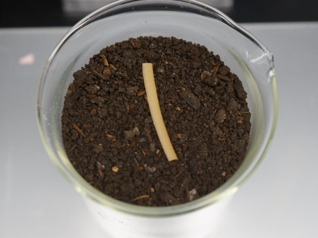 Este material es unido a esporas bacterianas de una cepa común en el suelo, Bacillus subtilis, que se descompone al exponerse a los nutrientes del compost. Por eso lo definen como ‘plástico vivo’.