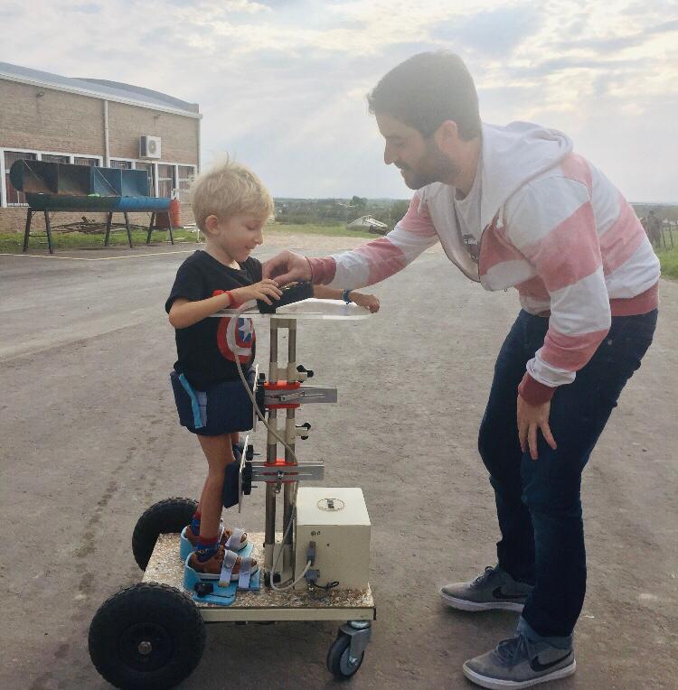 Alejandro fue premiado por su original creación, un bipedestador motorizado desarrollado para mejorar la movilidad de niños y niñas con discapacidad motriz. La historia comenzó a hilvanarse en 2014 cuando conoció a Facundo, el hijo de una de las profesoras de la facultad.
