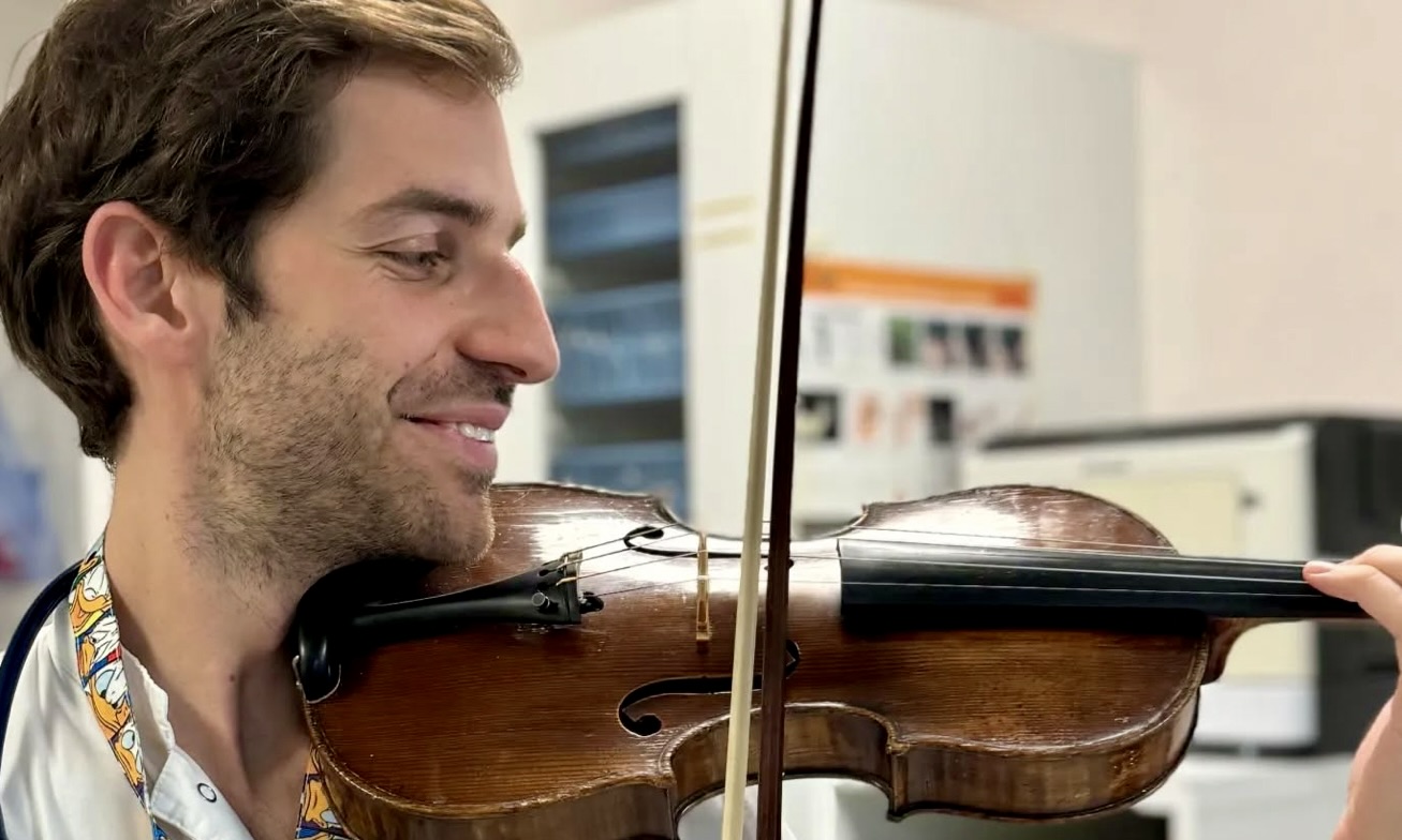 Un día cualquiera, Joan decidió ofrecer su música con el violín en el vestíbulo del hospital donde hacía las prácticas, junto a una compañera que lo acompañaba con el cello. Eran las vísperas de Navidad, antes de que el mundo se viera azotado por la pandemia del Covid-19.