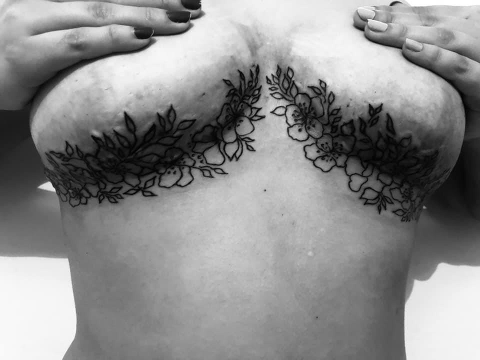 En ese momento, siete años atrás, a su prima le diagnosticaron cáncer y le extirparon las dos mamas. “Me mostró cómo le había quedado la piel muda. Al sacarte la mama, desaparece la areola y el pezón y queda todo lisito. Ella me sugirió tatuarla una vez que se curara. Me puse a investigar cómo era la cirugía, si la prótesis iba por delante o detrás del músculo porque para tatuar, ese dato era importante”, recordó.