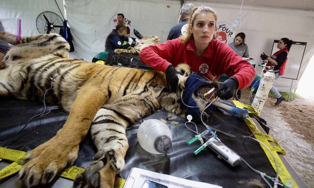 El zoológico de Luján, que hoy transita su etapa de cierre definitivo, permitía el contacto directo con los animales, motivo que impulsó su clausura -no fue tanto la tenencia de animales-. «Esto está prohibido en la provincia de Buenos Aires, pero no a nivel nacional. El primer contacto de nuestra organización con Argentina fue en 2022 cuando nos pidieron rescatar cuatro tigres de un campo en San Luis. Habían estado 15 años en unos vagones de tren de circo, en pésimas condiciones«, señaló. Un año después, regresaron al país para rescatar tigres de los cotos de caza en Balcarce.